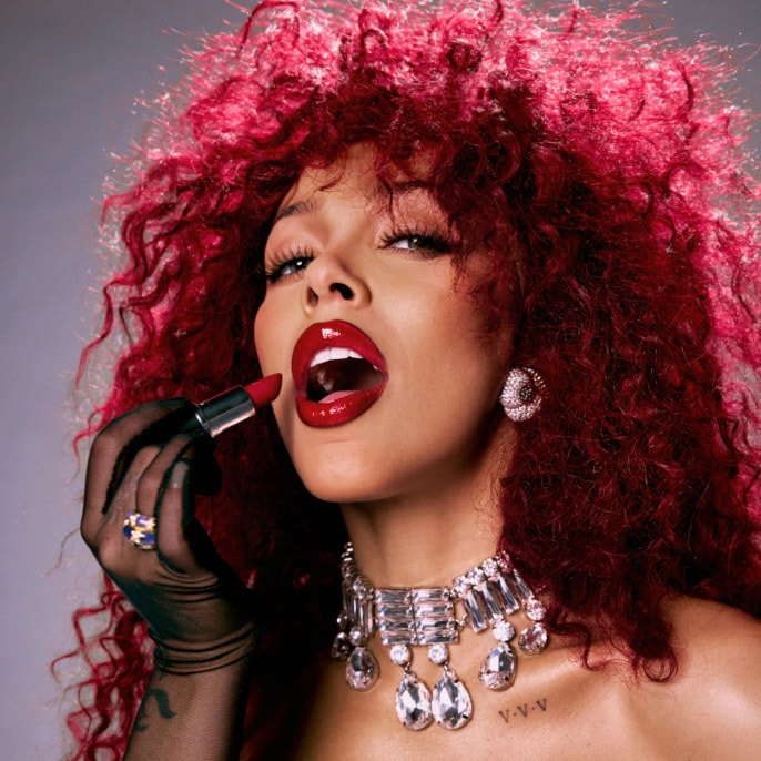 一方の私たちはというと、スキンフィニッシュ ライトストラック リキッド ハイライター、ダズルシャドウ リキッド アイシャドウ、そして マキシマル シルキー マット リップスティックを使って彼女のまばゆいメイクルックを再現することをずっと夢見ています。