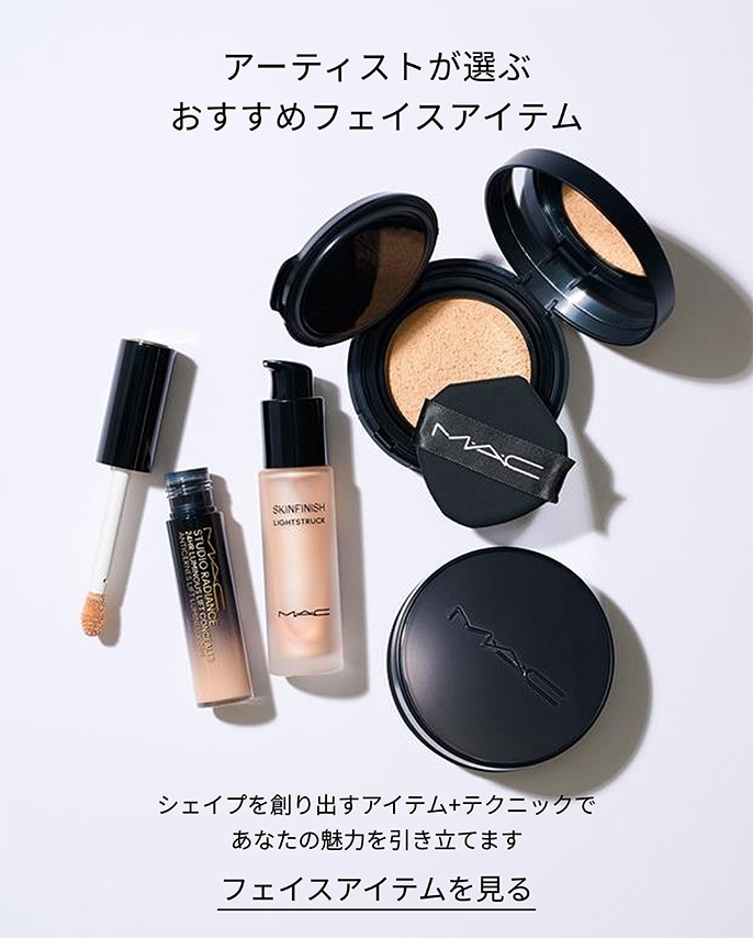 2026 M·A·C スプリング コレクションMETAMORPHOSIS幻想的で、やわらかな輝きが舞い降りる大人フェアリーな春限定コレクション コレクションを見る 「スキンフィニッシュ ライトストラックリキッド ハイライター / ライトスカペード」がヘア&メイクアップ アーティスト小田切ヒロさんのYouTube「HIRO BEAUTY CHANNEL」にて、2025 年間ベストコスメ受賞 製品を見る NEWPOWDER KISS新感覚パウダーキスが進化して登場“キスの余韻”のように軽く、ふわっと淡く色づく。ラフにひと塗り、力の抜けた洒落感を。 詳しくはこちら 春コレクション ルックのヒントを見つけてPOWDER KISS LOOKSパウダーキスで軽やかにふわっと洒落る#ミュートブラールックの作り方や、ファッショントレンドから着想を得たルックの作り方をご紹介。 すべては美しいメイクのために。M·A·C ハイパーリアルスキンケアに新製品登場メイクアップ・ファーストだからこそ、こだわり抜いたスキンケアシリーズから遂に化粧水とみずみずしいジェルクリームが新登場。 ハイパーリアル シリーズを見る BEST SELLER eギフト対応 BEST SELLER BEST SELLER eギフトお届け先の住所を知らない方にも、LINEやメールなどで受け取りURLを送ることで気軽にギフトを贈ることができます。 詳しくはこちら LINE ミニアプリM·A·C の人気リップをBT21キャラクターでカスタマイズ!詳しくはこちら バーチャルトライあなたの気になるカラーをバーチャルで手軽にトライ!詳しくはこちら 店頭メイクアップ予約個性を活かして、お一人おひとりに合ったルックをカスタマイズ。メイクアップスキルの高い M·A·C アーティストが、メイクアップサービスからレッスンまでご提供します予約はこちらから オンライン特典オンライン限定特典や、最新のキャンペーン情報などをご紹介詳しくはこちら