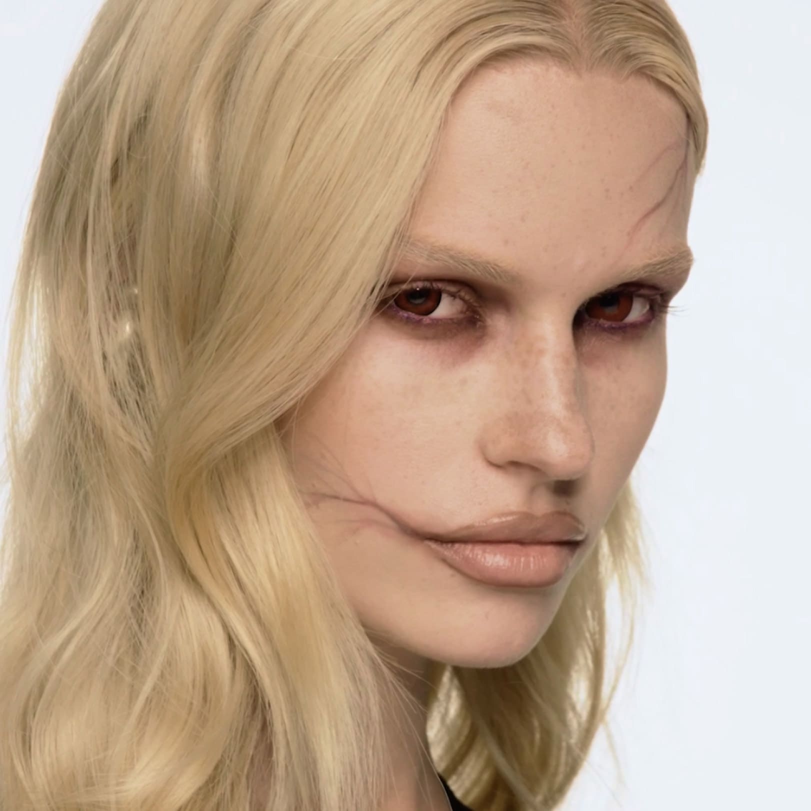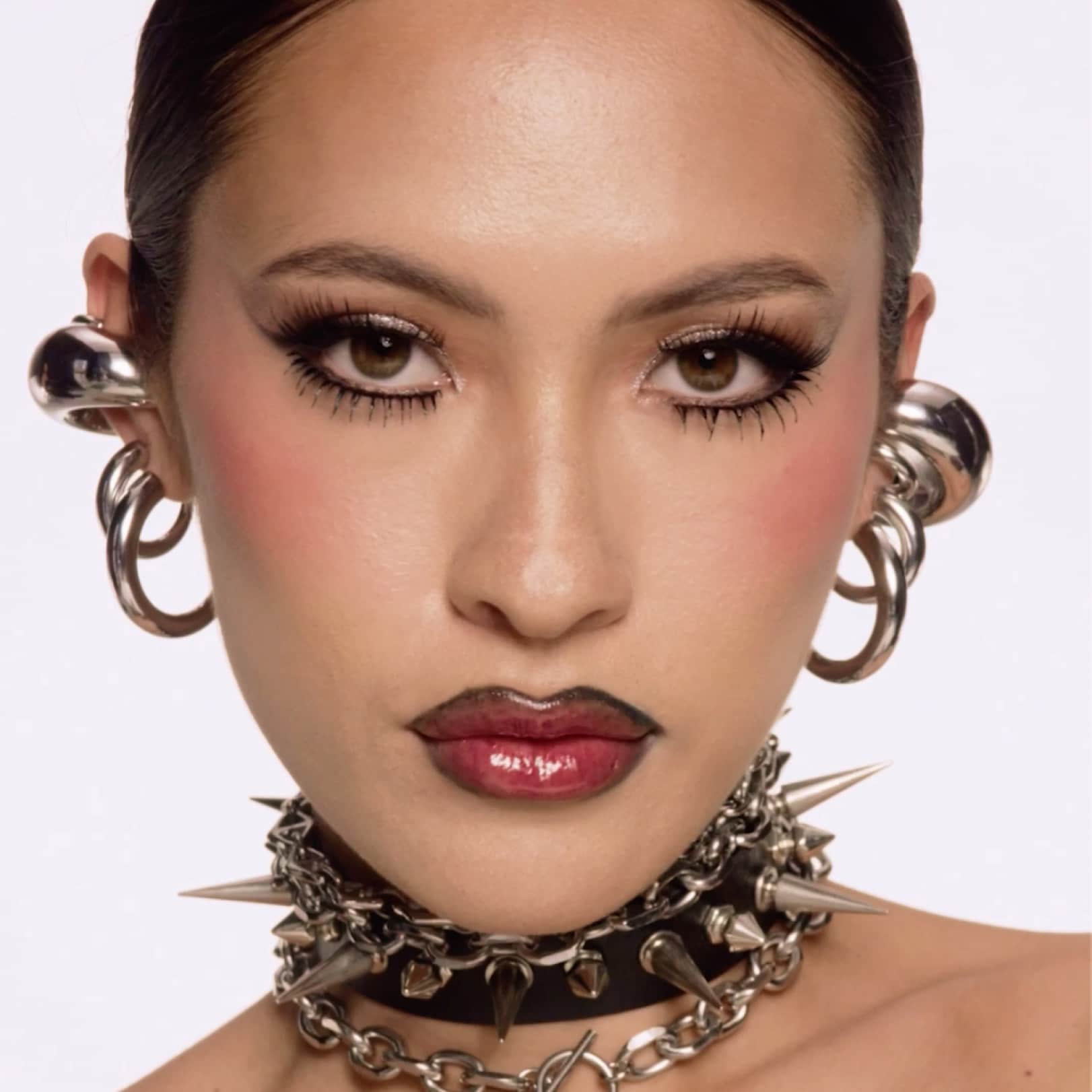 大胆なまつげと艶めくリップを組み合わせた、ムーディでセクシーな“ゴス×ホット”ルック。