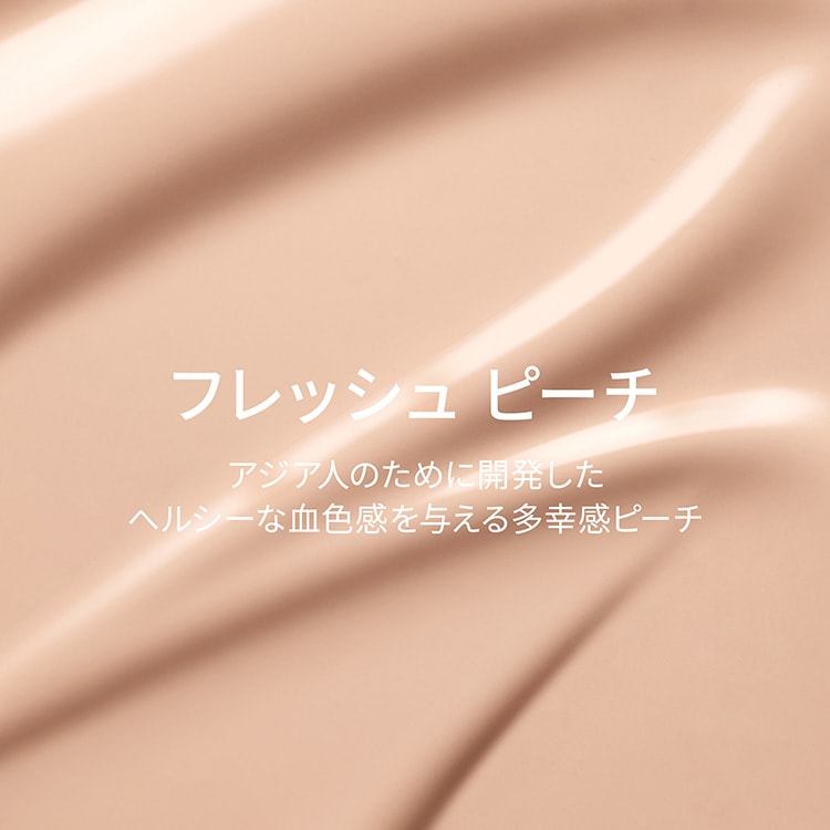 ブラウンやグレーがかった影をカバーし、やわらかなピンクピーチの色味で肌トーンのムラを整えます。