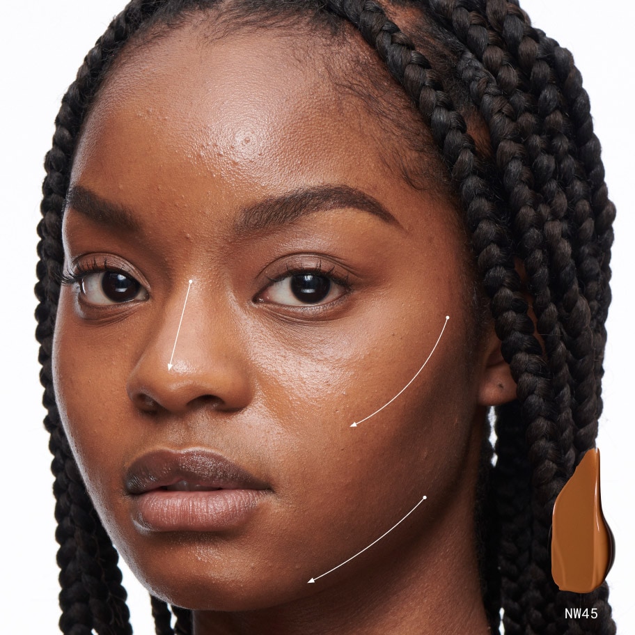 毛穴、ニキビ跡やシミをカバー。うるおいを守りながら、仕上がり36時間持続*